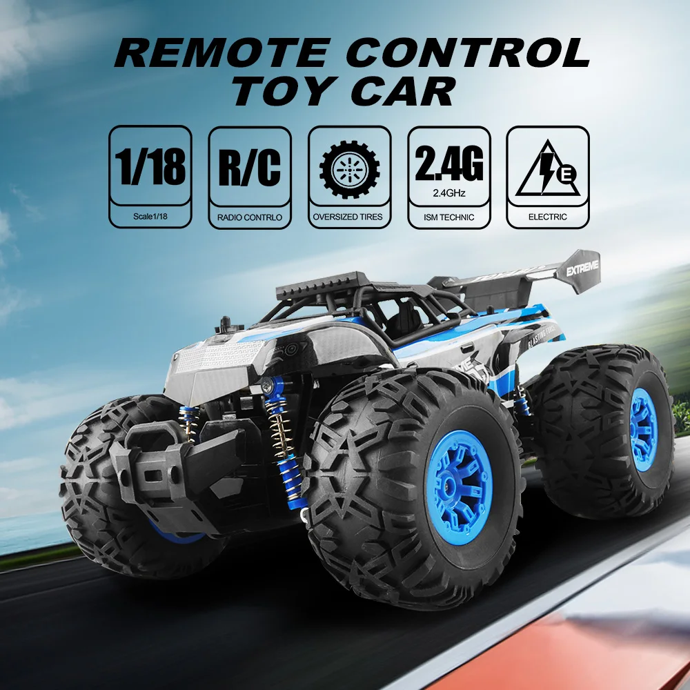 RC Car 2.4G 1/18 15KM/H High Speed Remote Control Car Monster Truck Oversize Tires Bigfoot RC Car R