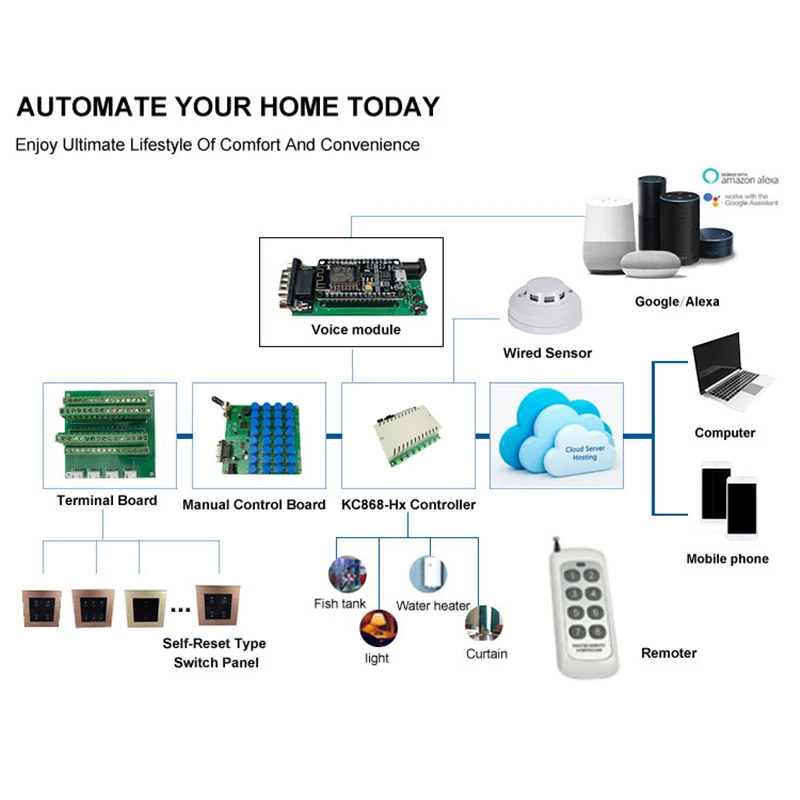 8+8CH Smart Home Automation Module Controller Remote Control Domotica Hogar Work with Wan/Lan Ether