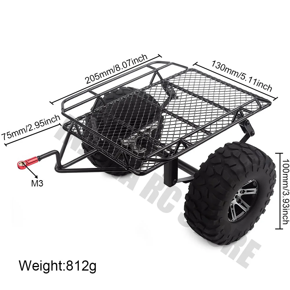 Metal RC Car Single Axle Trailer Kit for 1/10 Scale RC Rock Crawler SCX10 90046 D90 Tamiya CC01 Tra